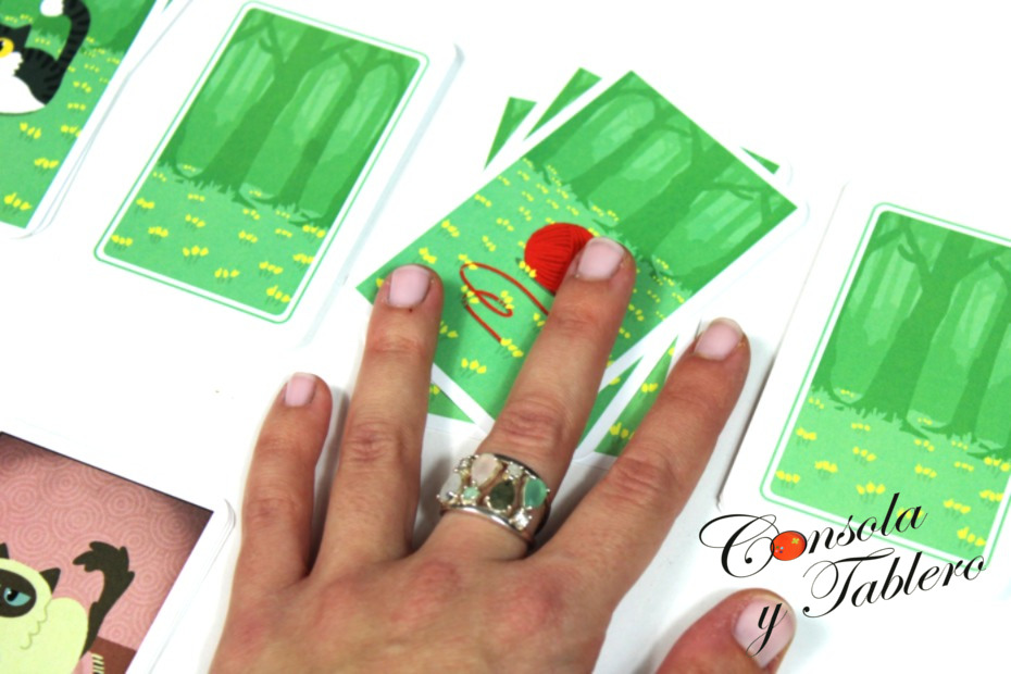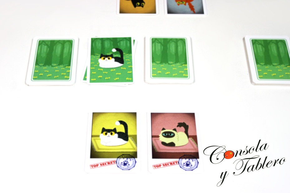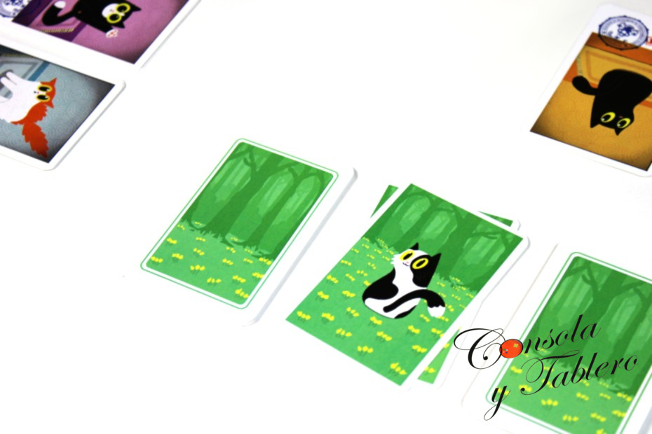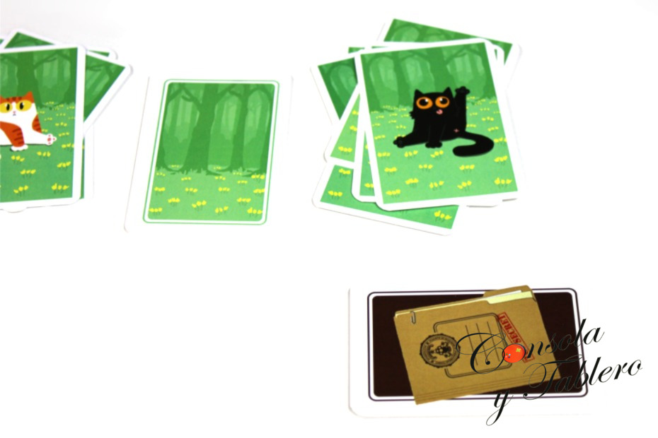 Como ya hemos visto, el Buscagatos intenta completar su dosier, descartando sus cartas. Jugará con la concentración máxima. Con la memoria. No consiste en memorizar el orden de cada gato y su posición en el bosque, sino todos los que podamos. Los que tengamos visibles y algún detalle de los demás. Tal vez, sean los siguientes del dosier.
