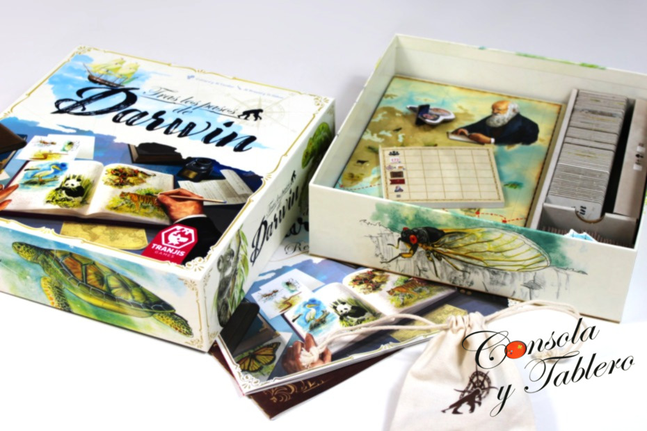 Tras los pasos de Darwin es una de las novedades de Tranjis Games para este mes de marzo. A muy pocos días para ver la luz, publicamos una guía de juego con 28 fotografías. Permite descubrir sus bonitos componentes (la caja pesa muchísimo) y aproximarse a sus reglas, a modo de hoja de ayuda.