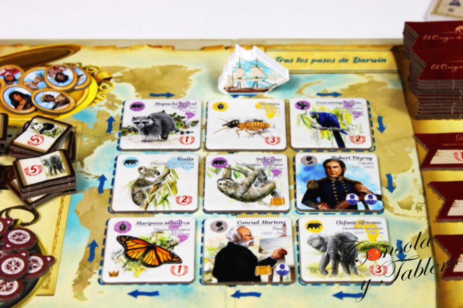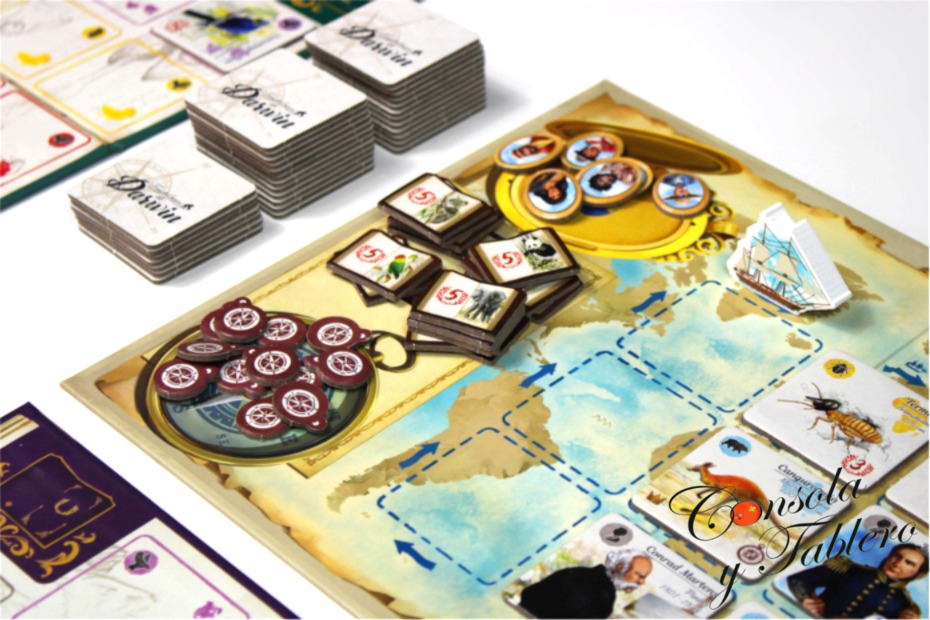 Al final de la partida, obtendremos puntos por los descubrimientos, los mapas y las brújulas, los tratados, las teorías y la ficha de Darwin. Sigue la esencia de un set collection. Puede disfrutarse entre 2 y 5 participantes, desde los 8 años, en competiciones de 30 minutos. Lleva las firmas de Grégory Grard y Matthieu Verdier. De las ilustraciones se encargan Maud Briand y David Sitborn.
