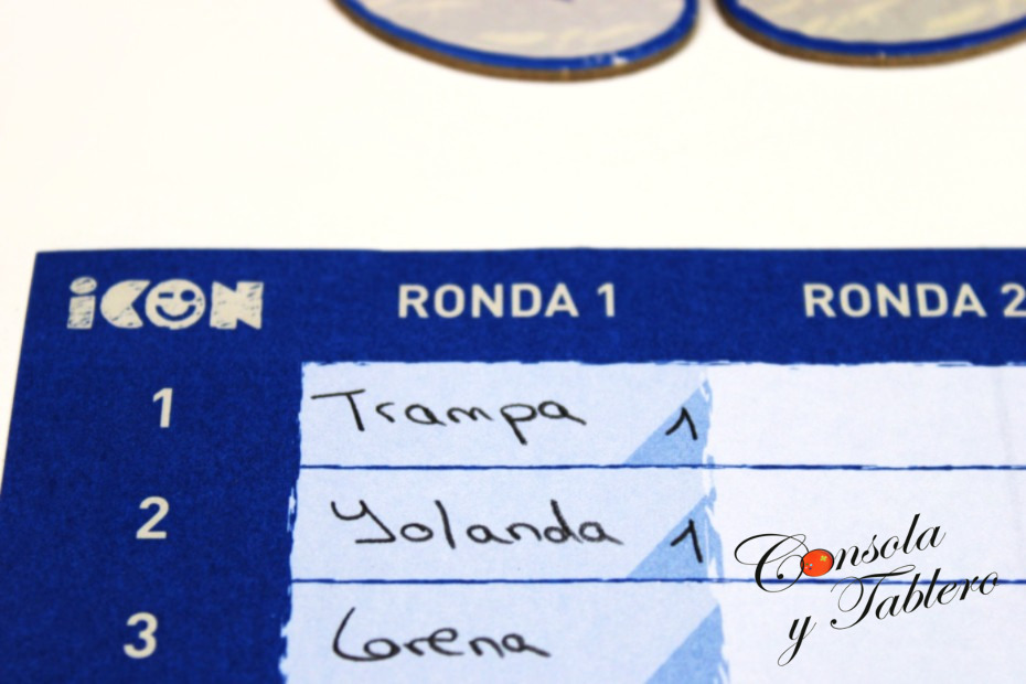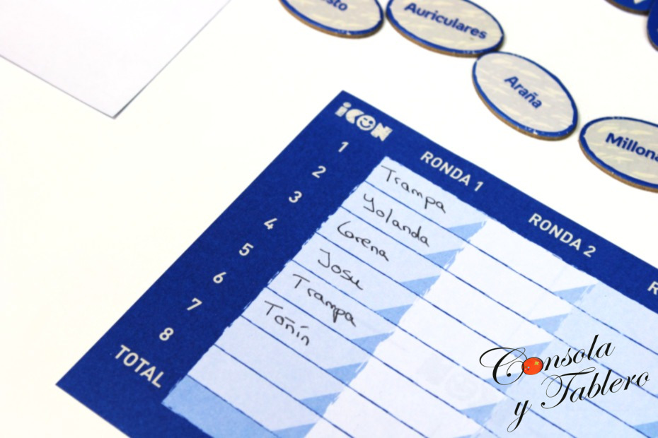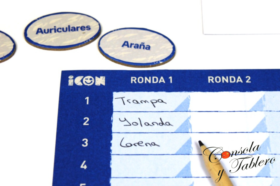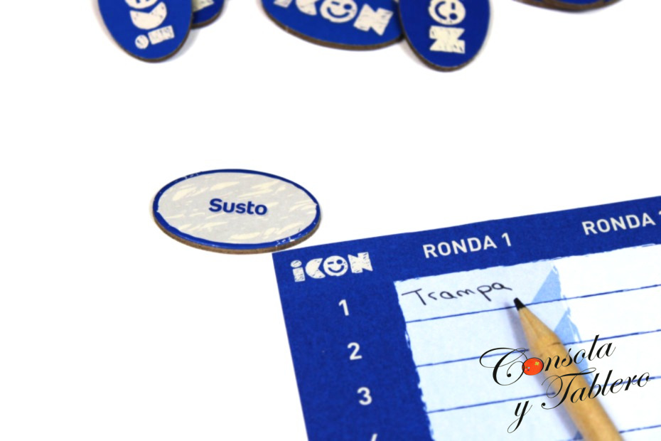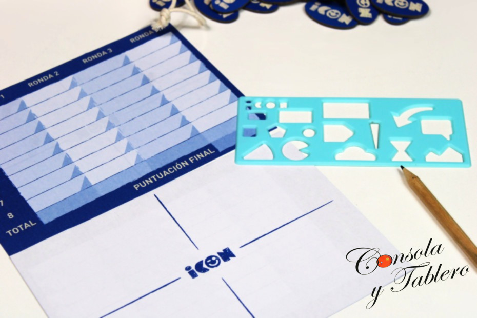 Componentes de ICON.Cada jugador recibe dos hojas (una para dibujar y otra para la puntuación), un lápiz y una plantilla.Mezclamos todas las fichas. Si lo preferimos, podemos jugar con cronómetro.En cada ronda obtenemos una ficha secreta. Será la palabra que tengamos que dibujar.Sólo podremos utilizar las figuras de la plantilla. Estarán representadas en su totalidad y no a la mitad.Introducimos las fichas en la bolsa, más dos al azar. Serán las trampas.Todos muestran sus dibujos.Extraemos una ficha de la bolsa y escribimos a quién creemos que corresponde. Nadie deberá ver el nombre anotado.Hacemos lo mismo con la siguiente ficha, y así hasta que estén todas. Una vez esté escrito un nombre, no podrá borrarse.Cuando salga el nuestro, anotamos nuestro nombre. Las que creamos que no pertenecen a nadie se marcan como trampa.Cuando todas hayan sido extraídas, se determina, una a una, a quién pertenecen.Recibimos un punto por cada palabra asignada correctamente (incluidas a las trampas).Añadimos uno por cada jugador que haya acertado la nuestra.Sumamos los puntos totales. La partida tiene una duración de cuatro rondas.Pasaremos la plantilla al de la izquierda.Repetiremos los mismos pasos con una nueva ficha.El ganador será el que tenga más puntos totales.
