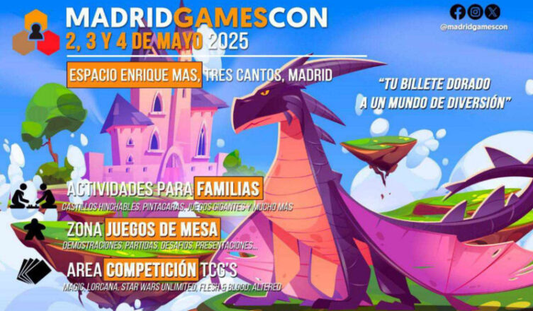 Los días 2, 3 y 4 de mayo tendrá lugar un nuevo evento de juegos de mesa. El Ayuntamiento de Tres Cantos, 3Meeples, Júpiter Juegos y OZ Juegos organizan Madrid Games Con, unas jornadas con entrada gratuita en Tres Cantos.