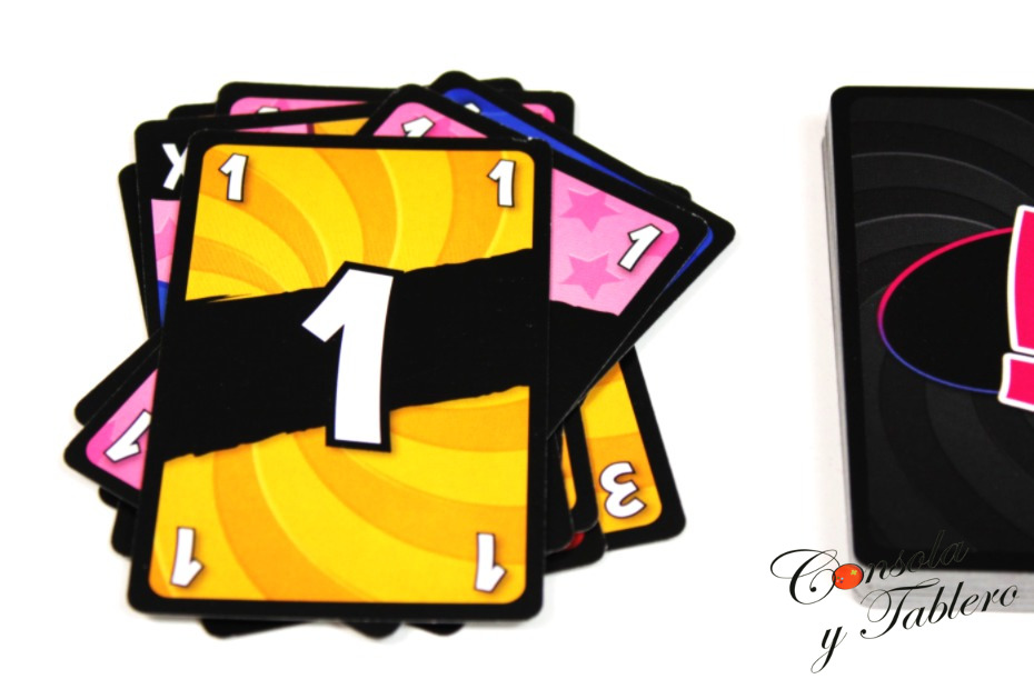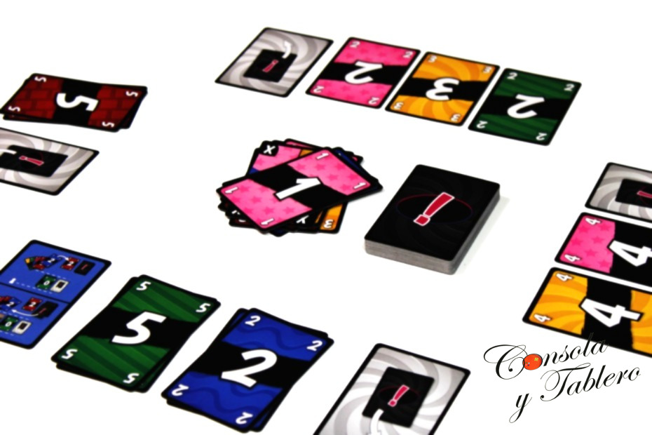 Componentes de juego.El primero paso es barajar todas las cartas. Repartimos cinco a cada jugador. Extraemos la primera del mazo central para conformar los descartes.El turno de cada persona consiste en jugar una carta. Podrá bajarse a los descartes o a la colección propia.Para jugar carta en los descartes debe coincidir en número o en color con la última visible. El turno termina.El comodín funciona como cualquier número o color. Hay que anunciarlo tras jugarlo. Nunca se suma a la colección.Para bajar carta a la colección, necesitamos que la carta en cuestión no encaje ni en número ni en color con los descartes.Se agrupan por colores, de tal forma que la de arriba proteja a las de abajo.Tras añadir carta a la colección, robamos una del mazo.En ocasiones, ocurrirá que una de la colección encaje con la de los descartes. Tendremos que enviarla a los descartes en lugar de jugar una de la mano.La ronda termina cuando alguien se quede sin cartas. Es decir, cuando juegue la última de su mano en los descartes (recordamos que al añadir a la colección siempre se roba una). Revelamos las cartas de la colección.Sumamos los valores de las cartas de la colección y restamos los de las cartas de la mano (el comodín son 10 puntos negativos).Si alguien consigue llegar a 50 puntos, gana. De lo contrario, jugaremos una nueva ronda.
