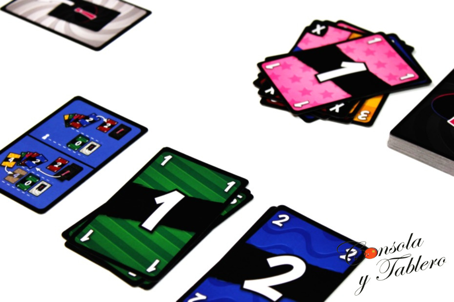 Comparte la esencia más común: el descarte basándonos en un mismo número o color. Sin embargo, da una vuelta de tuerca. Lo importante no son los descartes (al menos, no del todo), sino las cartas que consigamos añadir a la colección. Como cada vez que sumemos una, robamos otra, y las que nos queden en la mano restan puntos al final, será fundamental encontrar el equilibrio.