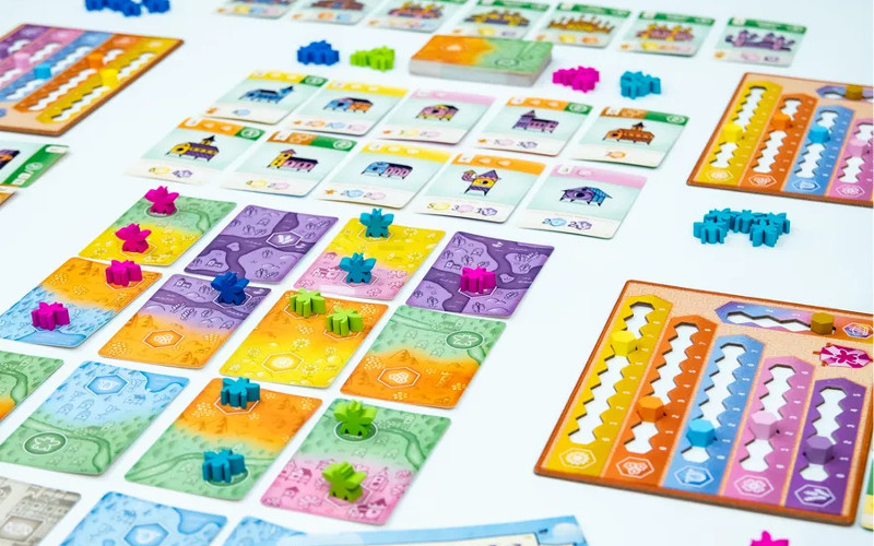 Podremos comprar cartas de ciudad, pagando los recursos indicados. Como última acción, es posible adquirir un palacio. El coste es mucho mayor. Cuando alguien haya comprado diez cartas, la partida termina. Nos servirán para obtener puntos y para reducir el coste en la adquisición de futuras cartas.