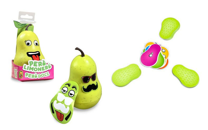 72 cartas y una caja de pera personalizable, a través de sus pegatinas, dan forma a esta novedad de Mercurio. Se presenta como un juego educativo de rapidez mental. Nos propone deshacernos de las cartas antes que los demás. También tienen forma de pera, por supuesto.