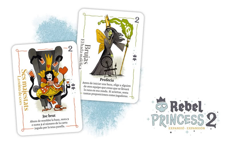 Concretamente, encontraremos 19 nuevas cartas de ronda y 10 princesas adicionales. Apuesta por la inclusión de las villanas de los cuentos tradicionales, ya que aparecen como princesas. Así, la caja se compone de 41 cartas, de un nuevo bloque de puntuaciones y de instrucciones en valenciano y castellano.