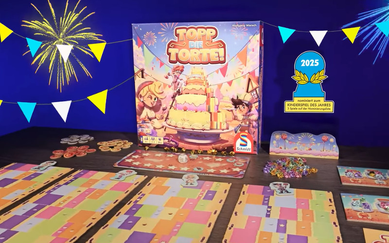 Topp die Torte! se ha convertido en el mejor juego de mesa infantil del año. Puede disfrutarse entre 2 a 4 participantes, en 20 minutos de duración. Está indicado a partir de los 6 años. Lleva la firma de Wolfgang Warsch, un reconocido autor. De las ilustraciones se encarga Michel Verdu.
