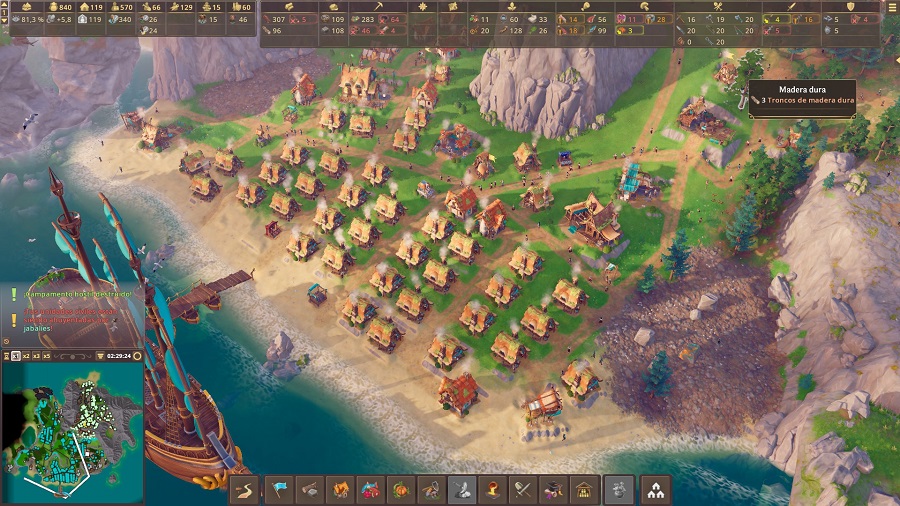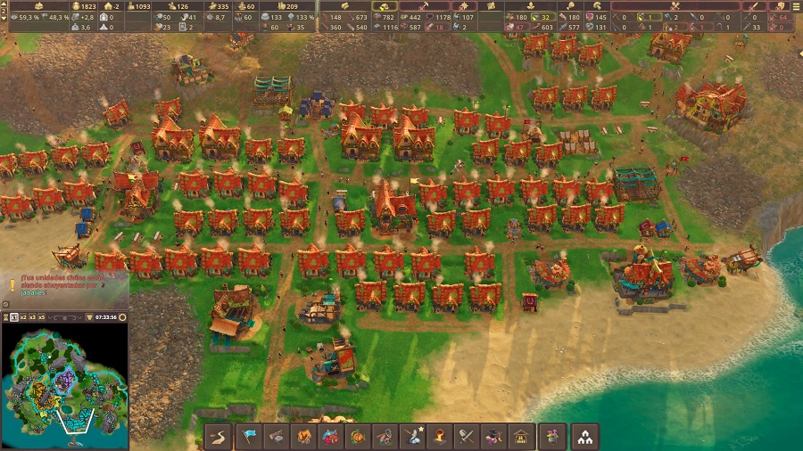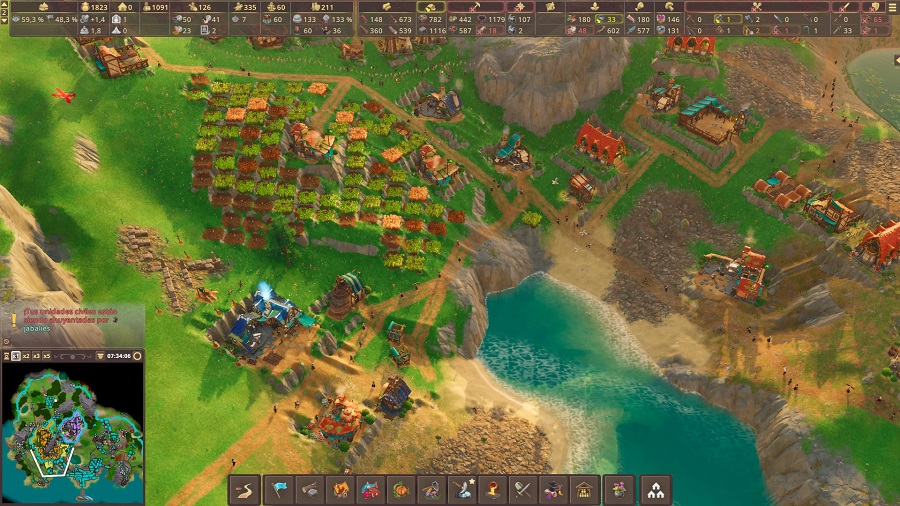Pasamos a un ordenador normalito. Cuando hay muchos habitantes y aumentamos la velocidad a x5, el juego da tirones y eso que se cumple con los requisitos mínimos. Por suerte, es algo que no resulta muy habitual, aunque no debamos omitirlo. En un ordenador superior a uno de gama media, va muy fluido.