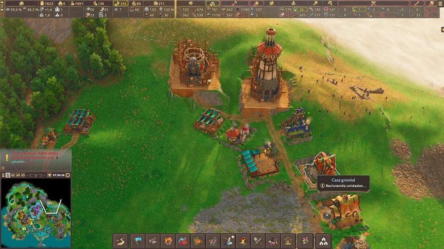 No es que sea complejo el sistema de batallas, pero al menos es funcional. No podemos manejar las unidades como tal, sino que las enviaremos mediante torres de vigilancia o fuertes, entre otros, a patrullar una zona que deseemos y así combatiremos a los enemigos que pasen por ahí. También podremos dar la orden de atacar una zona concreta.